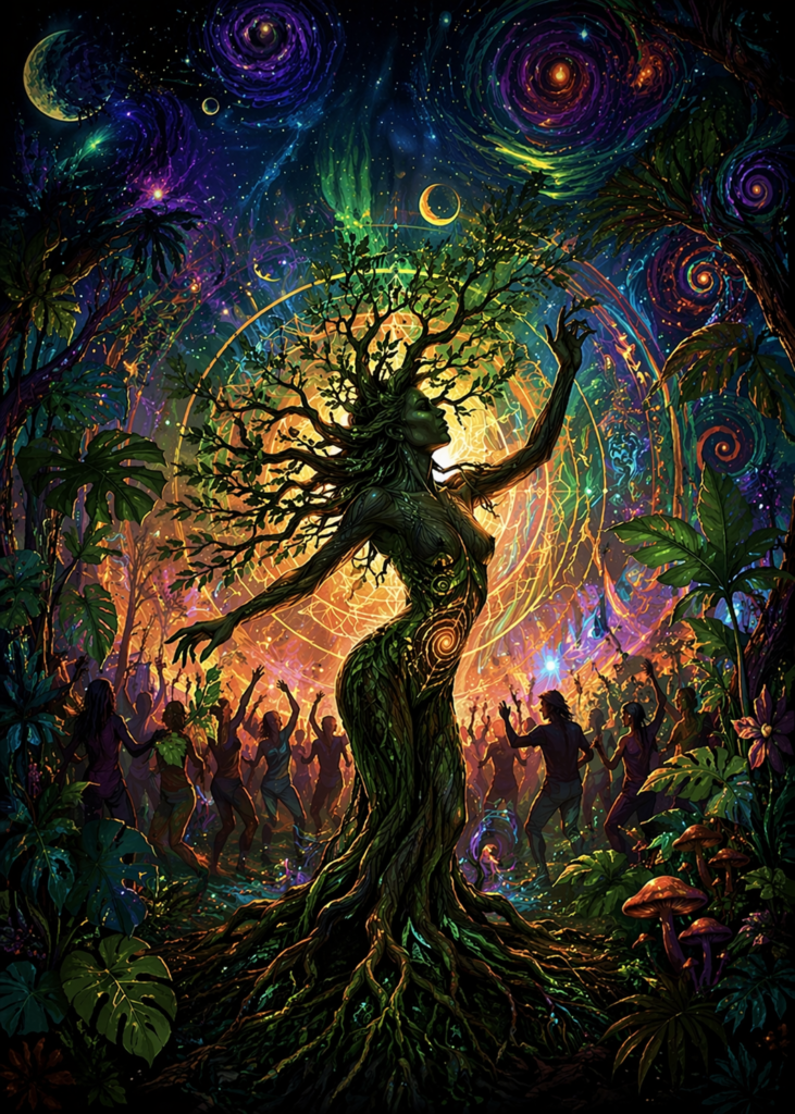 - verbunden mit den werten des ecstatic dance und mit einer begeisterung für die treibende kraft der elektronischen musik, freuen wir uns, mit euch den tanz der bäume zu feiern